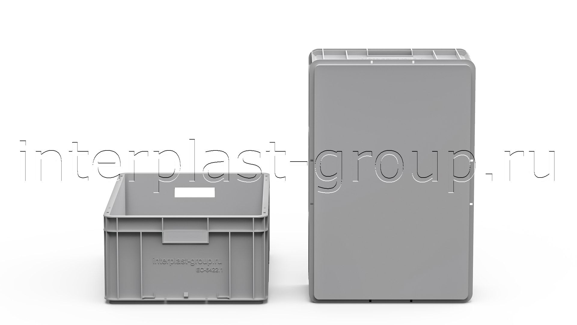Евроконтейнер открытые ручки/сплошное дно (серый), 600x400x220 мм