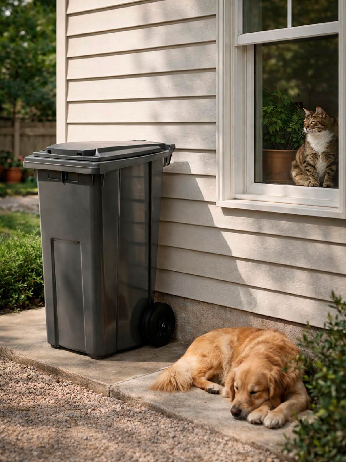 Контейнер изготовлен из первичного ПНД, устойчивого к ударам, морозам, влажности и солнечному воздействию. Колёса позволяют перемещать бак даже по неровной поверхности, а плотно прилегающая крышка предотвращает распространение запахов, попадание дождя и расклёвывание мусора птицами. Совместим со стандартными коммунальными системами как классический евроконтейнер.