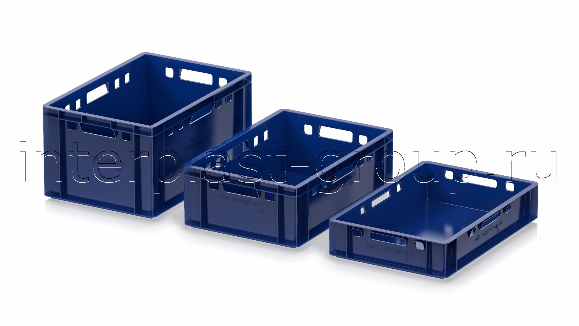 Ящик для мяса Е1 это первый по размеру в линейке мясных ящиков. Разработан специально для использования в мясной промышленности. Отлично штабелируется и собирается в единый сет со всеми ящиками серии. Изготовлен из первичного полиэтилена, и адаптирован для хранения в холодильных и морозильных камерах.