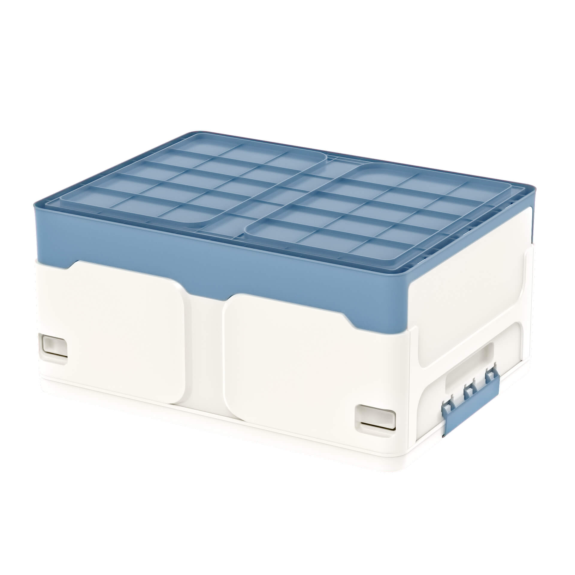 Складной пластиковый ящик 480х360х240 мм, бело-синий – надежное и стильное решение для хранения