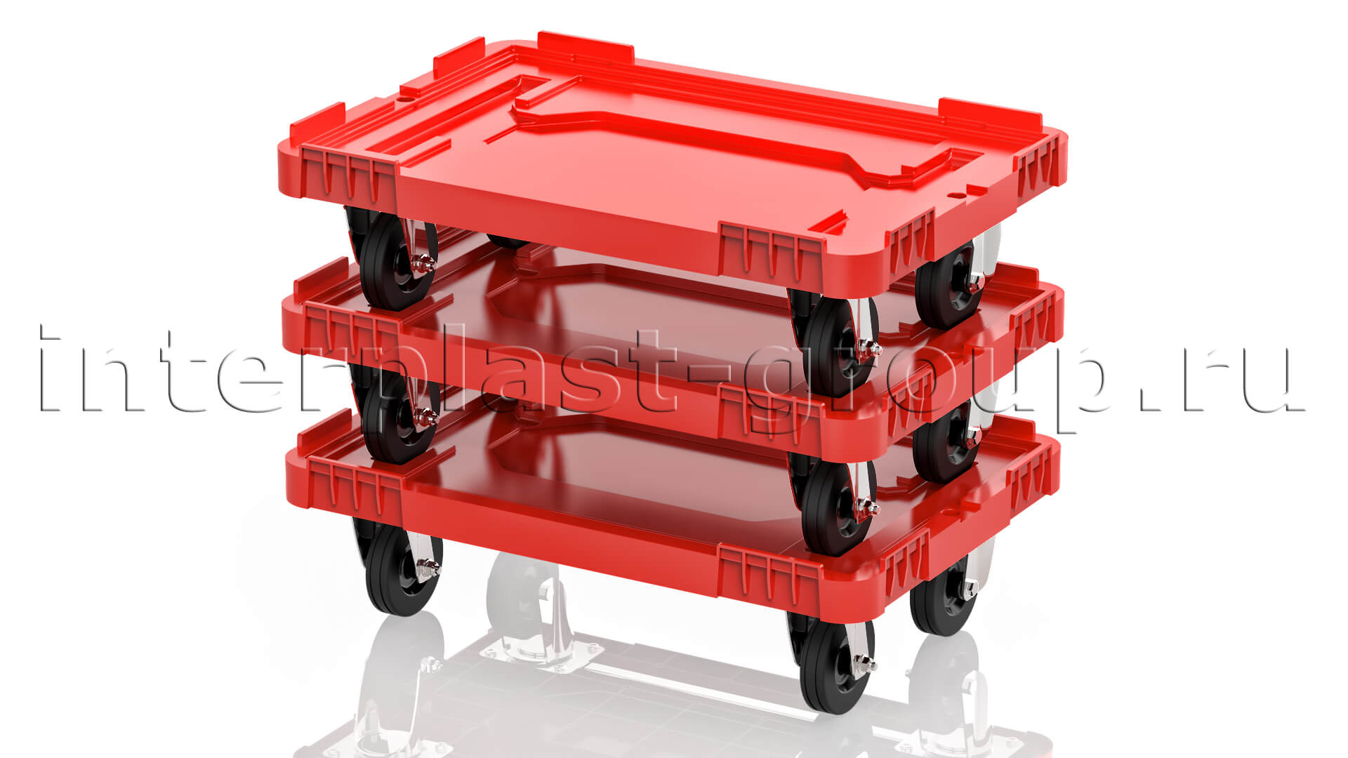Тележка пластиковая сплошная без тормозов усиленная красная