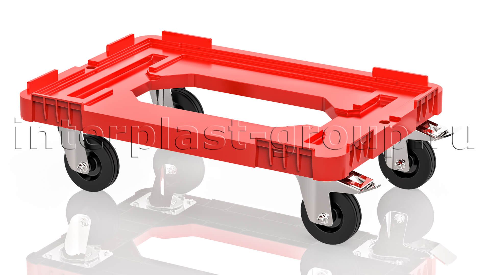 Тележка пластиковая с отверстием 2 колеса с тормозом красная в Ижевске