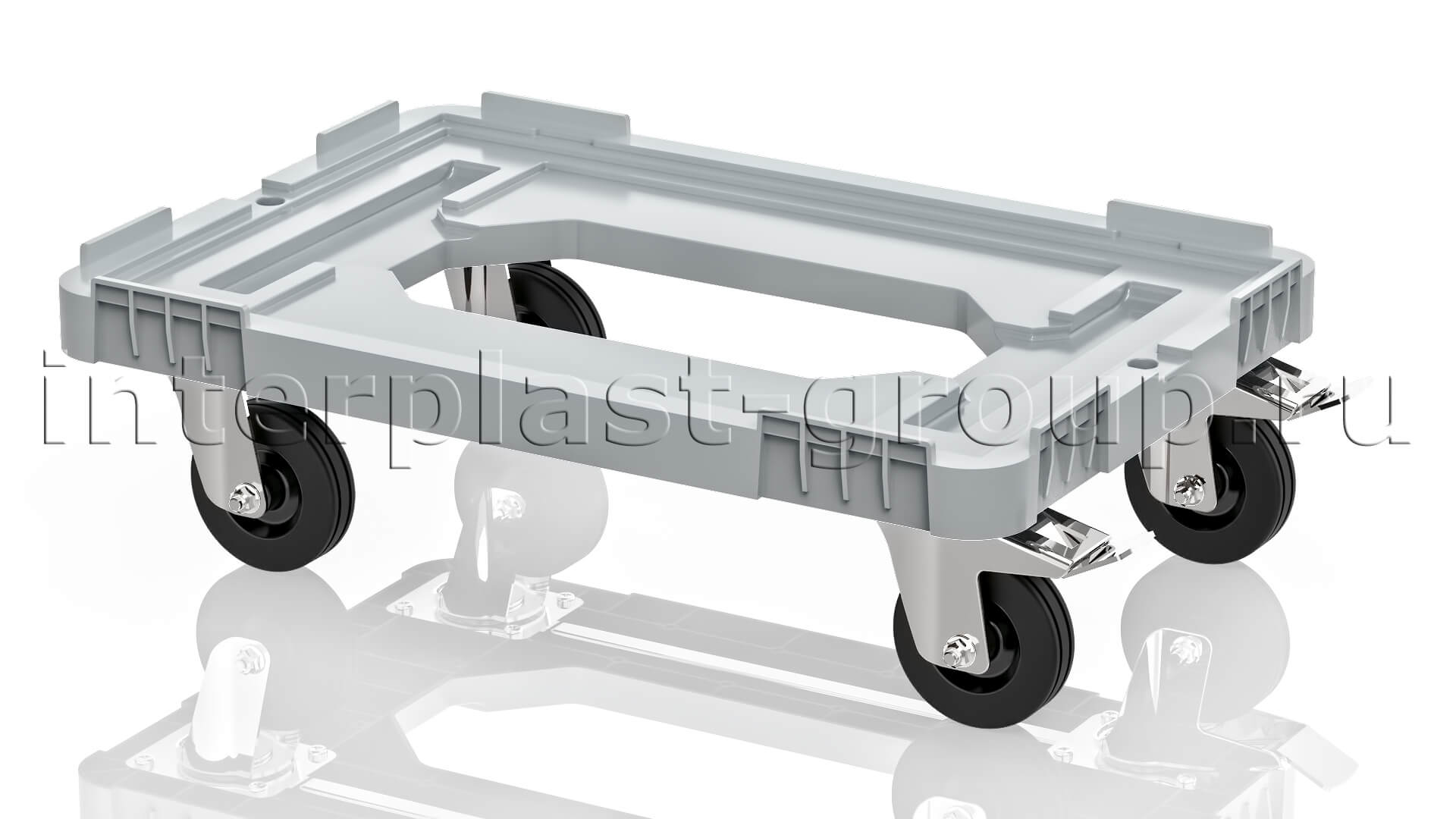 Тележка пластиковая с отверстием 2 колеса с тормозом усиленная серая в Ижевске